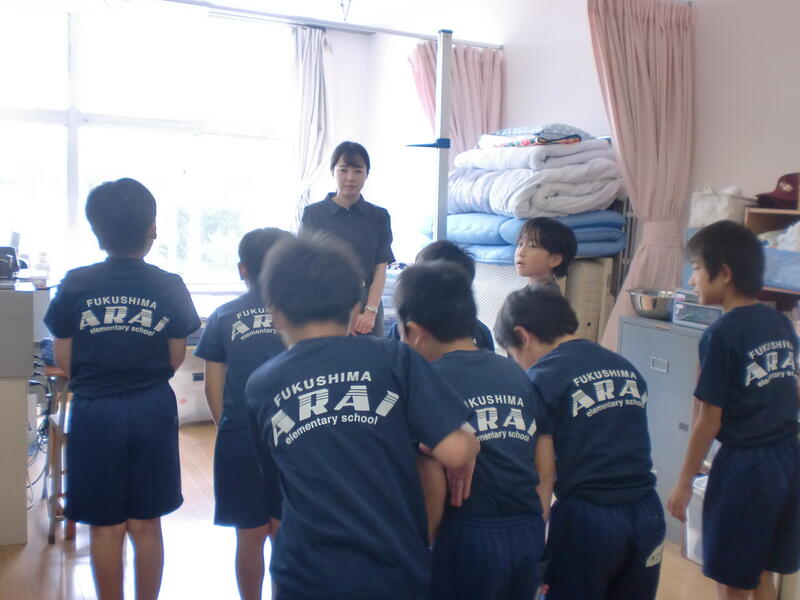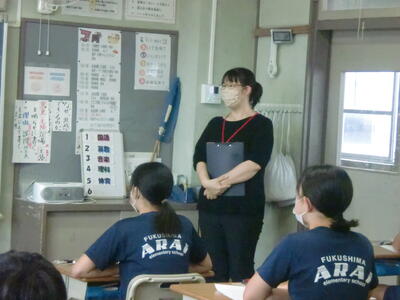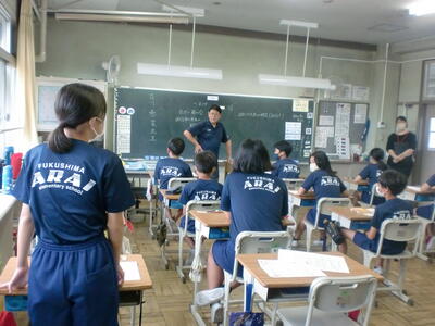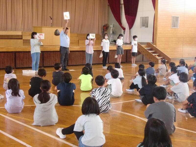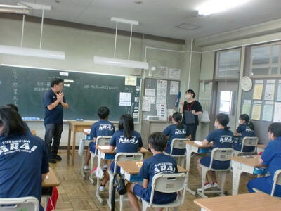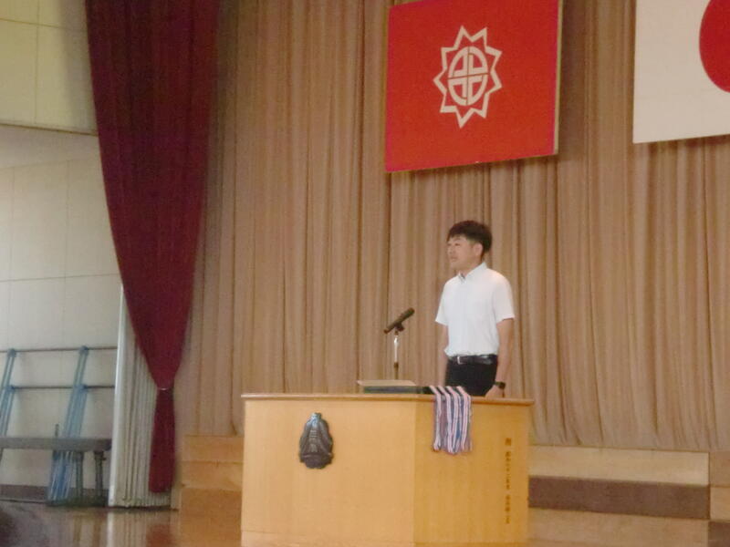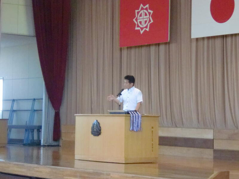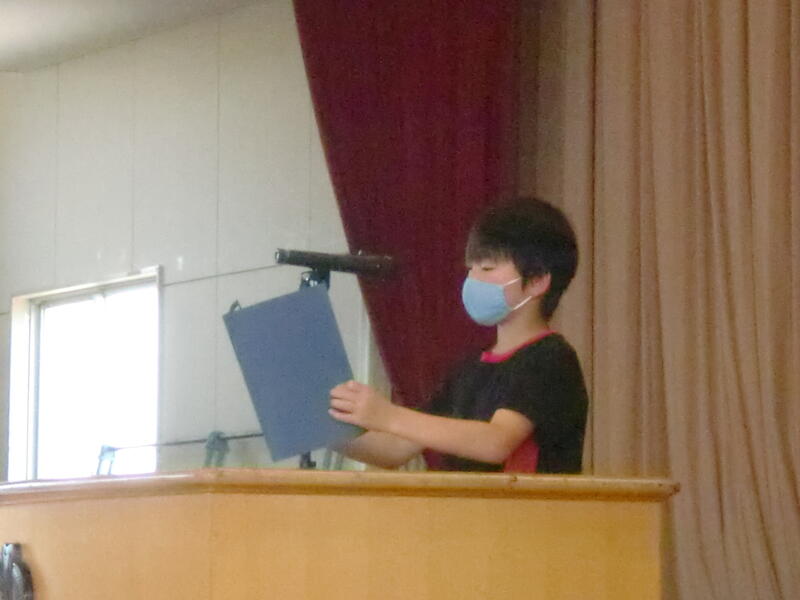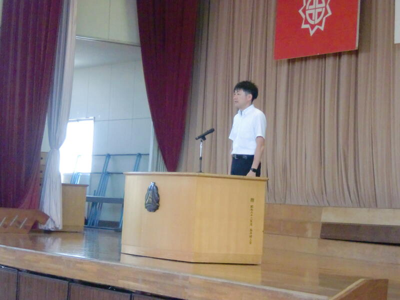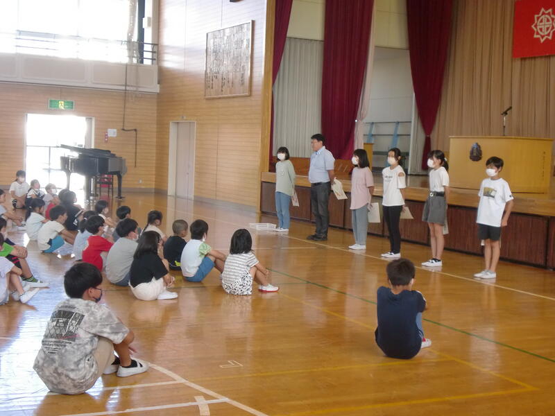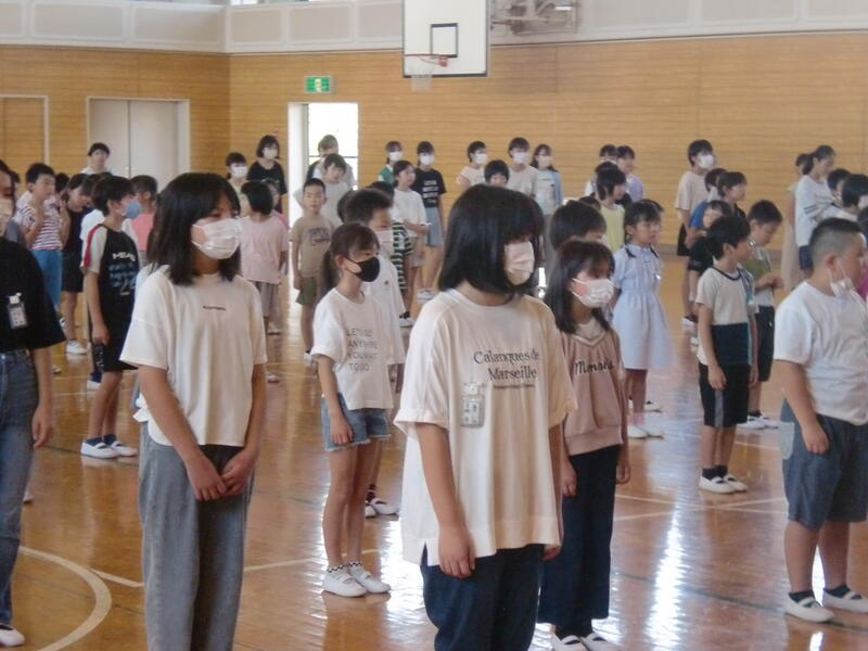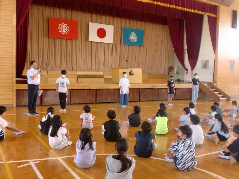 生徒指導の先生と6年生代表の皆さんから、夏休みの過ごし方についてのお話