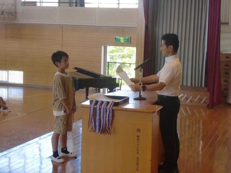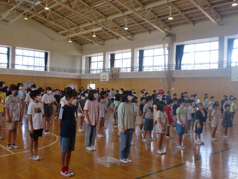 今日から2学期が始まりました。子どもたちは楽しい夏休みの思い出をたくさん作って登校してきました。始業式の後は、たなばた展と福島地区小学校水泳大会の表彰を行いました。そして教室に戻ると、夏休みの思い出を発表したり、宿題を提出したりと、それぞれの学級ごとに活動を行っていました。まだまだ残暑厳しいですが、暑さに負けず頑張りましょう。