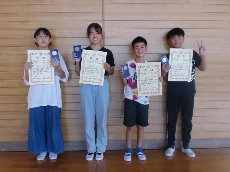 梅雨も明け、連日猛暑の中、福島市小学校体育大会水泳競技大会が中央部市民プールで行われました。この大会は今年が最後の記念大会です。本校からは4人の子どもたちが出場しました。1位2名、3位2名の全員入賞という、素晴らしい成績をおさめました❗️