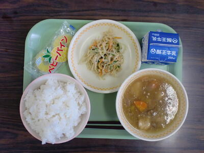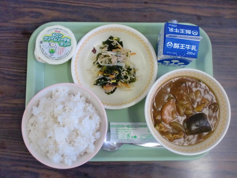 今日の献立は 麦ごはん 夏野菜カレー 海藻サラダ セレクトゼリー です。夏にぴったりのメニューでした。