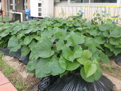 今日から7月。1・2年生が育てているアサガオや野菜も夏の日を浴びてぐんぐん成長しています。