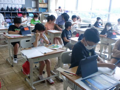 4年生は、先週見学に行った摺上川ダムについて、新聞にまとめています。3年生はテストの間違い直しをしました。1学期もあと10日。学習のまとめをしっかり行って、楽しい夏休みを迎えましょう。