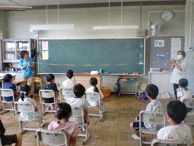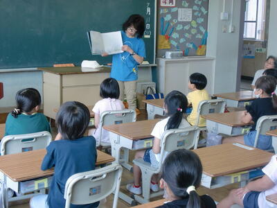 子どもたちは本が大好き。自分で読むのも好きですが、読んでもらうともっと集中して聞きます。今年もたんぽぽの会の方が荒井小1・2年生に読み聞かせをしにいらしてくださいました。読み聞かせの他にも、宇宙の話や自然の不思議さについても話していただき、子どもたちは夢中になって聞いていました。