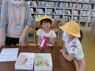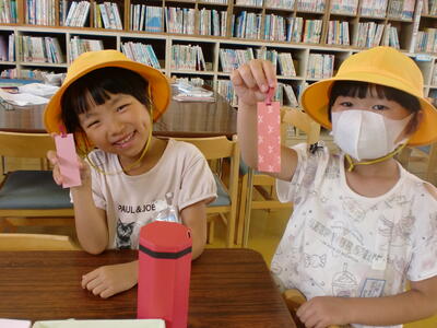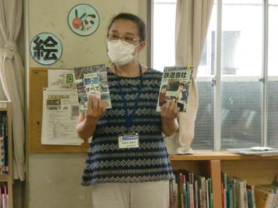 今日の読み聞かせに関係する本の紹介です。興味をもって借りる子どももいました。
