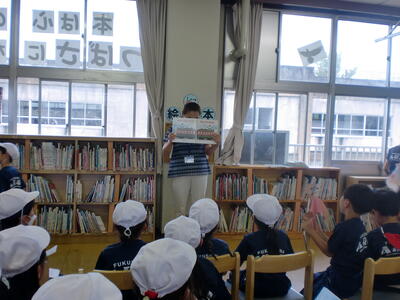 福島市では、「本を読まない子のいない福島市」をめざし、市立図書館と連携をして学校図書室の充実を図ったり、様々な取り組みやイベントを通して、子どもたちの読書意欲の向上を図っています。学校でも、図書担当の先生と学校司書、学習ボランティアの方々の協力で、子どもたちが図書室に足を運び、本に触れたくなる工夫をしています。