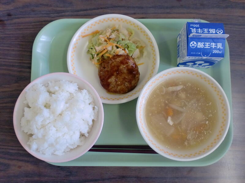 ごはん のっぺい汁 チーズインハンバーグ ピリ辛あえ