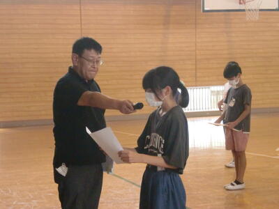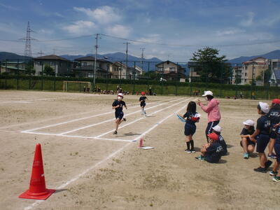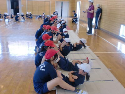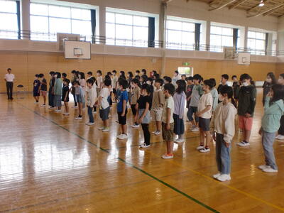 本日も梅雨とは思えないいい天気。全校生でスポーツテストを行いました。今回は反復横跳び、立ち幅跳び、上体起こし、50m走、ボール投げ、長座体前屈の6種目です。その他シャトルランと握力は、後日各学年で行います。