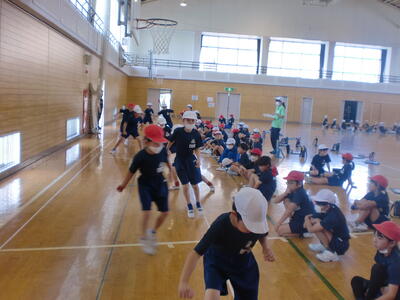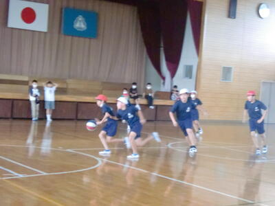 昨日とはうってかわって梅雨空。気温も7度近く下がっています。こんな日も子どもたちは元気いっぱい。業間の時間は、体育館で5年生がドッジボール、6年生がバスケットボールに汗を流していました。