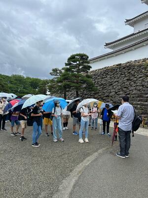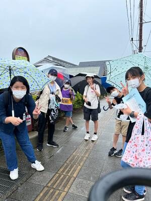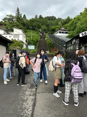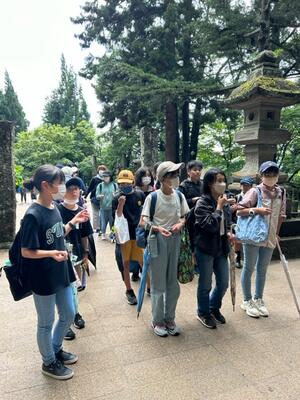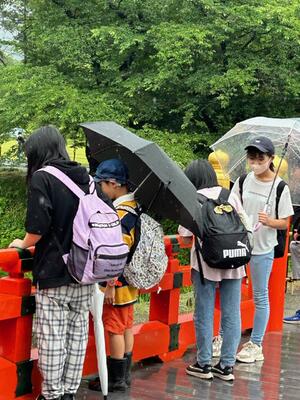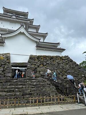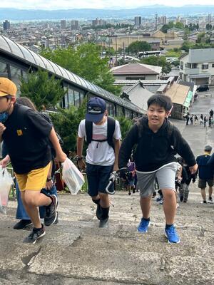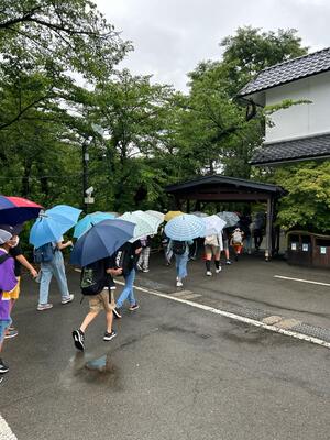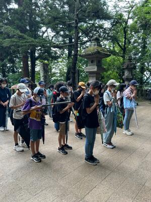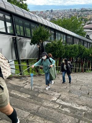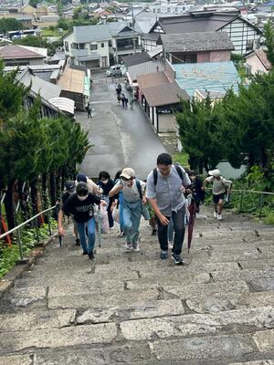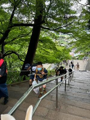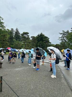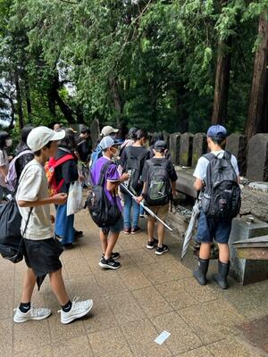最後の活動は、飯盛山に登って白虎隊のお墓に平和の祈りを捧げました。思った以上に急な階段に息を切らしました。雨があがってよかったー