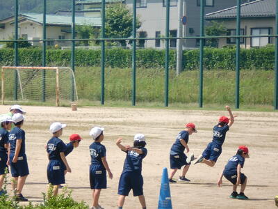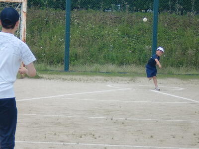 今週の水曜日はスポーツテストです。きょうの体育はそれに向けての練習です。運動身体プログラムで体をほぐした後、ボール投げの練習をしました。