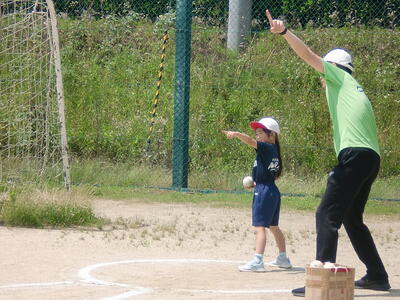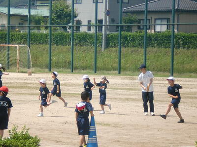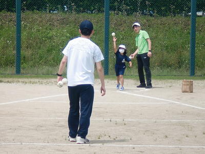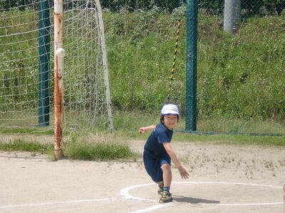 最近の子どもはボールを投げる経験が非常に少なくなっています。投げ方のコツを先生に教わり、それぞれ遠くに投げられるように一生懸命練習に取り組みました。