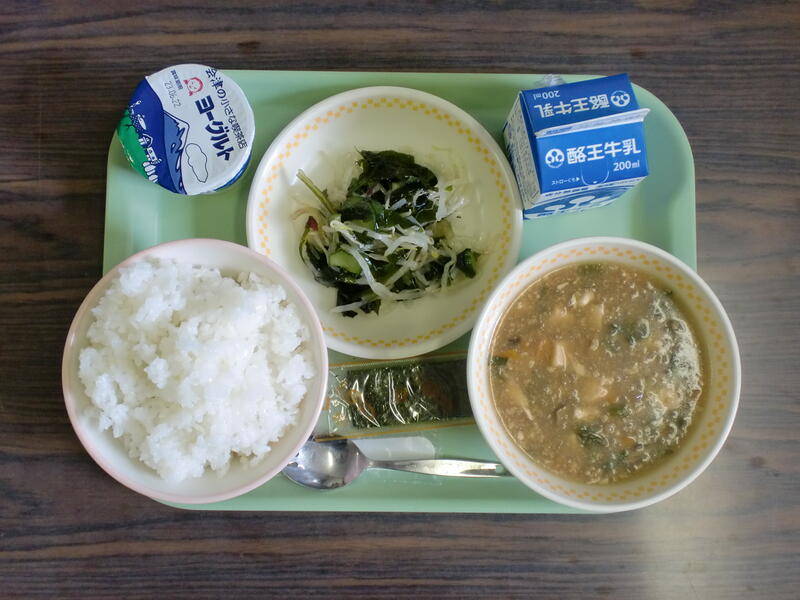 ご飯 味付けのり 麻婆豆腐 チョレギサラダ ヨーグルト です。