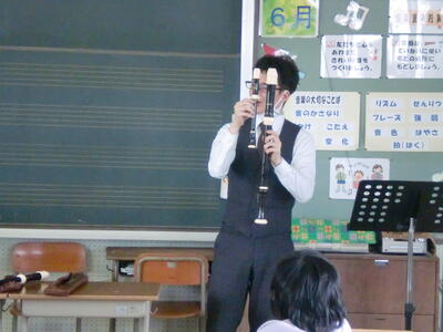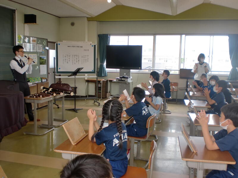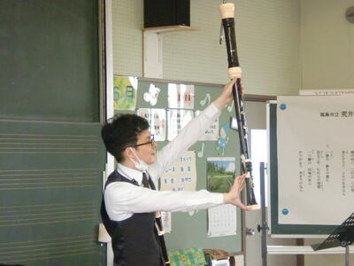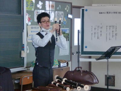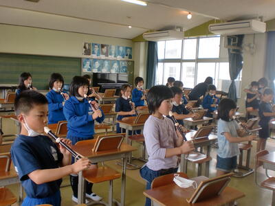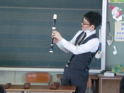 子どもたちは、「名探偵コナン」等、おなじみの曲に大喜び。リコーダーの魅力を知ることができました。