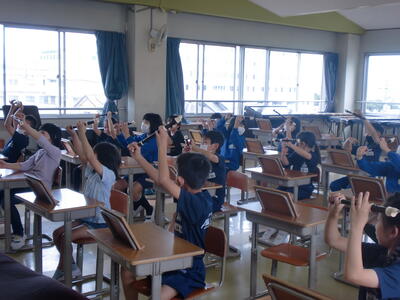 今日は、西信中学区の幼保小中連接事業が荒井小学校を会場に行われ、愛隣こども園・佐倉小学校・佐原小学校・西信中学校の先生方に5時間目の授業を見ていただきました。