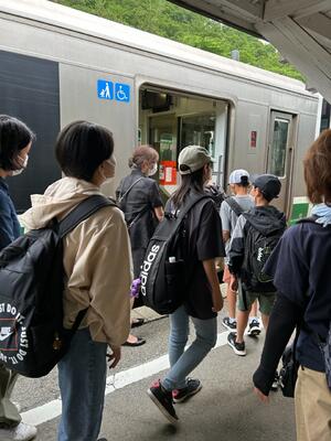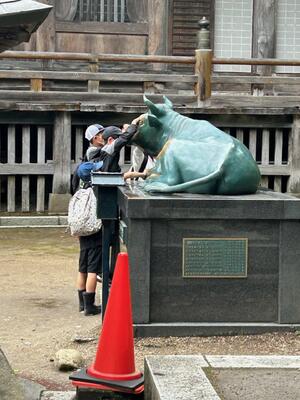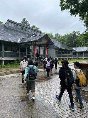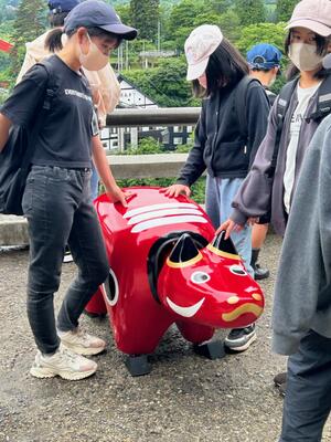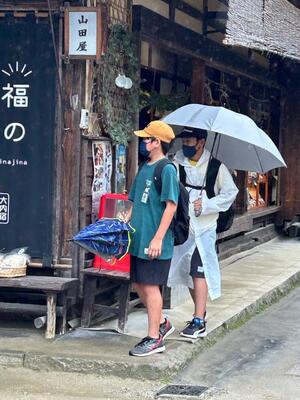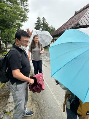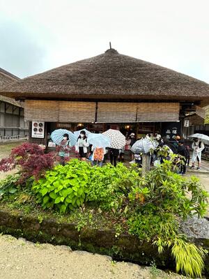 2023年6月15日 16時11分あいにくの雨。でも子どもたちは楽しく見学しました。ドイツからの来た女性とも英語で国際交流。さすがです