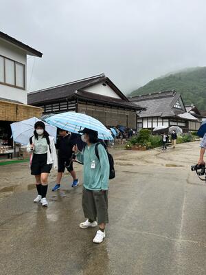 あいにくの雨。でも子どもたちは楽しく見学しました。ドイツからの来た女性とも英語で国際交流。さすがです