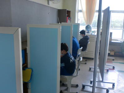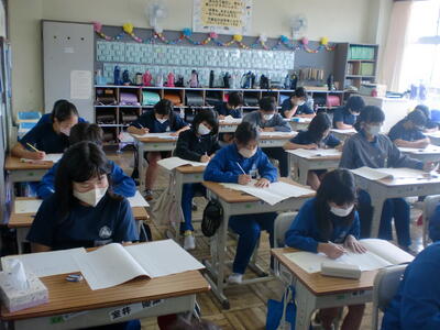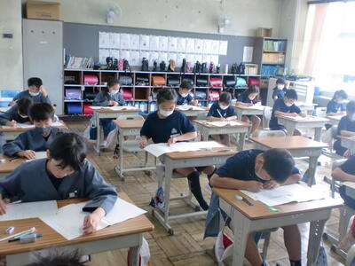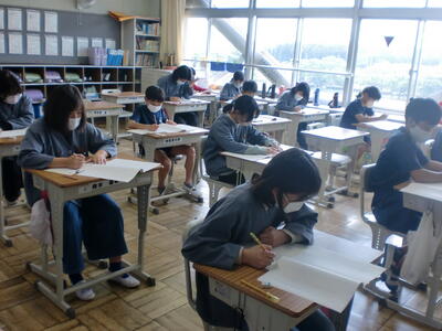 これは、子どもたち一人一人の学力の変化を小学4年生から中学3年生までの6年間見ていきます。その結果を、日々の授業に生かしていきます。子どもたちは集中してテストに臨んでいました。