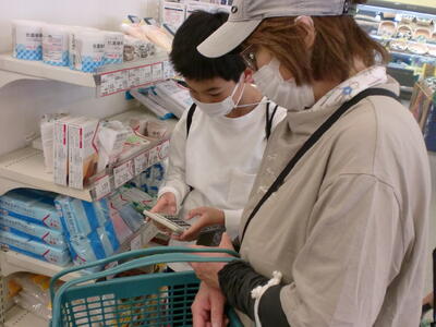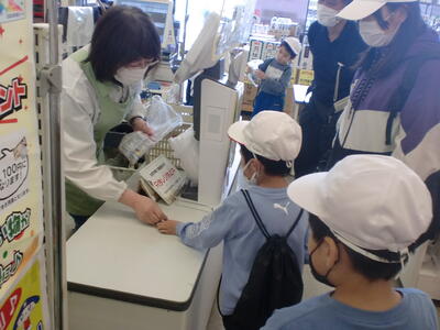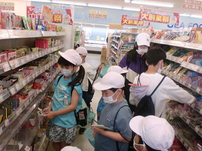 なごみ・かがやき学級では、明日の校外学習に向けて、おやつを買いにスーパーマーケットに行きました。「1人100円以内」の約束で、好きなお菓子を買いました。