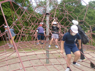 着いたらさっそくジャンボツリーにチャレンジ。6年生はもちろん、1年生にも一番上まで登れる子がいてびっくりでした。みんな思い思いに楽しいひとときを過ごすことができました。また、公共交通機関のルールも上手に守ることができて、今回の学習のめあてを達成することができました。