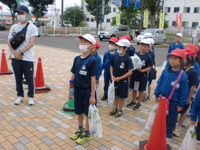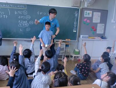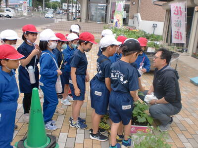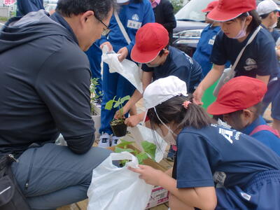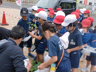 2年生の生活科「野菜を育てよう」の学習で、学校の道路向かいのJAに苗を買いに行きました。ミニトマトやキュウリ、ナス等自分が育てたい野菜の苗を買いました。
