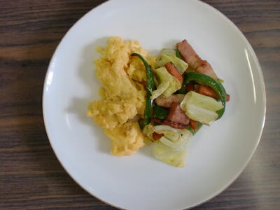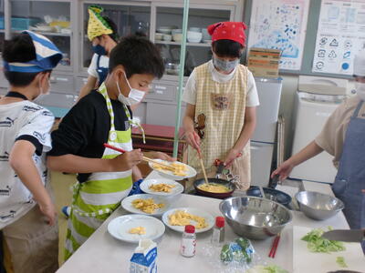 今日は6年生が調理実習でした。メニューは「スクランブルエッグ」と「野菜炒め」。さすが6年生。それぞれ手際がよく、上手に炒めることができました。