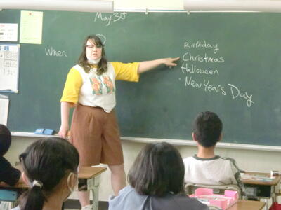 2023年5月30日 12時58分外国語科は、ALTのステファニー先生と学習しています。今日の内容は”When is your Birthday?”月日の呼び方について学習しました。