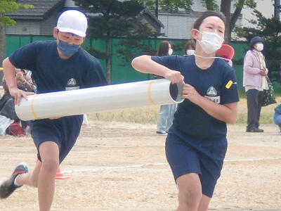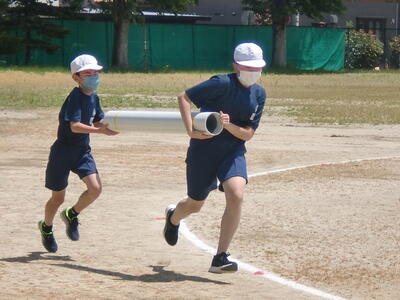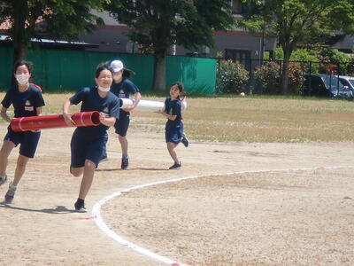 4校時は5・6年生の大バトンリレーの練習でした。今日の勝利は紅組!