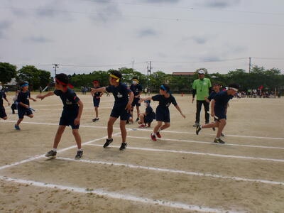 全校生が本気で競技に取り組み、すばらしい競い合いを見せてくれました。特に6年生は、小学校生活最後の運動会にふさわしい取り組みでした。