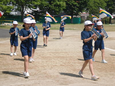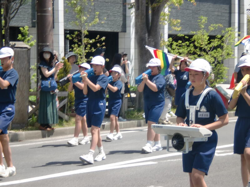 4年ぶりの町中で行われた福島市鼓笛パレード。保護者の皆様をはじめ、たくさんの人達の応援をうけ、子どもたちは堂々と校歌を演奏することができました。