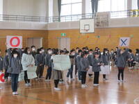 3月8日(水)、朝の放送で校長より震災についての講話を行いました。最初に被害にあわれた方に対し黙とうを行い、当時の様子や現在のふくしまの現状について説明をしました。話の最後には、このような出来事を自分にも関係があることとしてとらえ「ふくしまや世の中の発展のために力を尽くせる人になってほしい」との願いを伝えました。