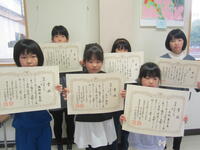 朝には「書初め展」と「読書マラソン」の表彰伝達が行われました。