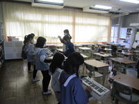 現在、4・5年生の鼓笛練習を週2回昼休みに行っています。6年生や先生方のアドバイスを受け、みんな真剣に取り組みながらがんばっています。