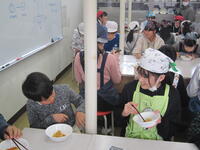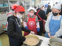 1月24日(火)、JAふくしま未来の婦人部の皆様の協力で「こんにゃく作り体験教室」を実施しました。講師を務めたのは、地元荒井でこんにゃく芋を栽培している宍戸さん夫妻です。今回は6年生が宍戸さんらに教わりながらこんにゃく作りに挑戦しました。子供たちは慣れない手つきでしたがしっかりがんばりました。完成後は試食を行い、いつもとは一味違う出来栄えや味わいに大満足の様子でした。