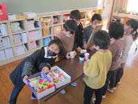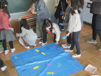 2年生の生活科の授業で1年生を招待しての「おもちゃまつり」が開催されました。これまで準備・作成したおもちゃなどを使って、みんなで楽しいひと時を過ごしていました。