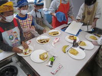 JA食育支援事業の一環で5年生の米粉を使ったクレープ作りが行われました。JAの担当者や婦人部の方々にもご協力いただき、班で協力しながらクレープ作りを体験しました。調理終了後は試食となり、満足のいく出来栄えに子供たちは大変よろこんでいました。5年生は今年度1年間米作りの学習を行っており、普段とは別なお米の利用方法を学ぶことができたようでした。