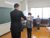 3月22日(火)、平成3年度の修了式をオンラインにより実施しました。校長式辞の中で、今年度の頑張りと次年度へ向け各自の目標設定について校長から話をしました。