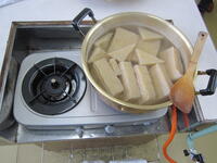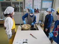 1月13日(木)、JAふくしま未来の協力で「こんにゃく作り体験教室」を実施しました。講師を務めたのは、地元荒井でこんにゃく芋を栽培していて、こんにゃく作りをしている宍戸さん夫妻です。今回は6年生が宍戸さんらに教わりながらこんにゃく作りに挑戦しました。児童らは摺った芋を火にかけ、粘り気が出るまでかき混ぜるなどの作業を行い、慣れない手つきでしたがしっかりがんばりました。