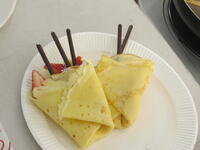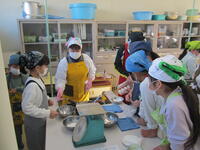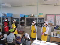 12月20日(月)、JAふくしま未来さんによる米粉クレープ作り体験教室が行われました。「米粉」や「地産地消」について学習しながら、講師の女性部の皆さんにご指導いいただき、実際に米粉クレープ作りに挑戦しました。試食の際にはそのおいしさに満面の笑顔があふれていました。