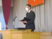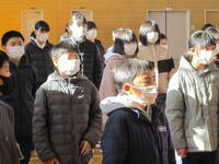このことを踏まえ、自分の目標をしっかりと「ことば」や「文字」にし、今日からの学校生活をスタートさせ、失敗や間違いを恐れずに、『チャレンジ・挑戦』を続けていくことで、自分の目標達成のために頑張るよう話をしました。その後、生徒指導の先生から、冬期間の事故防止とコロナ対応の継続について話がありました。また、新年度の抱負については、明日昼の放送で発表する予定です。