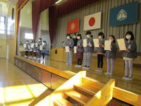 1月12日(水)、昼の放送の時間に、児童を代表して6年生2名からの作文発表がありました。内容は「3学期のめあて」ということで、残された小学校生活を充実したものにするために、それぞれが目指す目標を立て、そのことをしっかり発表することができました。