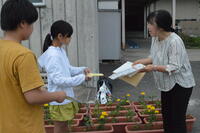 6月23日(水)人権擁護委員さんから、「人権の花運動」の一環として6年生の代表児童に花の苗を植え替えたプランターやステッカーなどが贈呈されました。