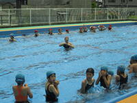 6月25日(金) 特別非常勤講師(高橋かおりさん)による水泳の授業が今日から始まりました。専門家の指導により子供たちの泳ぎの基礎技能がみるみるうちに上達することに感心いたしました。子供たちも大喜びで歓声をあげて取り組んでいました。