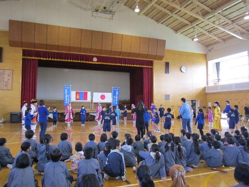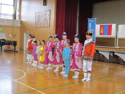 11月12日(火)にモンゴルの「太陽のこどもたち」との交流会が行われました。「太陽のこどもたち」は児童保護施設で生活する子どもたちです。東日本大震災のときに、困っている日本に対して自分たちの生活費とコンサートでの収益金を合わせて義援金を送ってくれました。それが縁で今回は福島市でチャリティーコンサートが開かれるました。本校の元PTA会長さんがぜひ荒井小児童とも交流させたいとのことで交流会が実施されました。荒井小児童も歌や踊り、楽器の演奏、そしてプレゼントなど様々な形で交流を深めることができました。