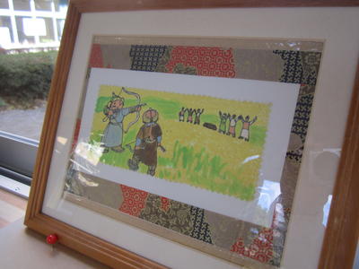 耐震工事により通ることができなかった1階通路が11月中旬より通れるようになりました。この1階通路に現在西信中学校生徒の技術家庭科や美術科の作品が掲示されています。また、11月12日に行われたモンゴルの子どもたちとの交流でいただきました絵も飾ってあります。どうぞご覧になってください。