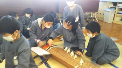 初めて筝(こと)にふれる子供がほとんどでしたが、先生方に教えていただきながら楽しく体験することができました。