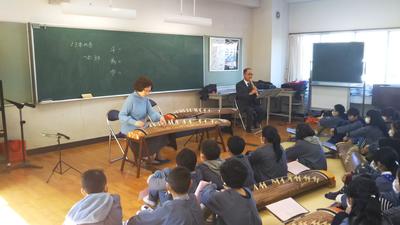 5,6年生で筝曲の蕃建笙子先生と尺八の寺井伸山先生をお招きして和楽器体験教室を実施しました。