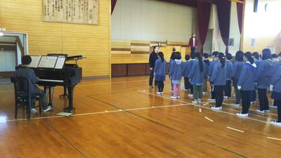 これまで各学級で、卒業式に向けて歌の演習を行ってきました。今日の全校集会が、全校で練習する最初です。6年生はもちろん、1年生から5年生も最高の卒業式にしようと、熱心に歌の練習をしています。
