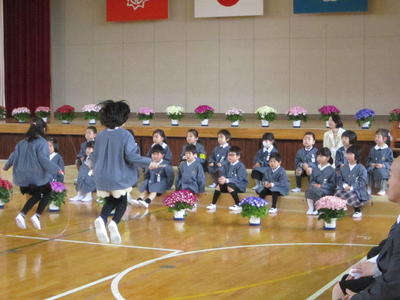 新鼓笛隊の演奏を見守る6年生も、堂々と演奏する4,5年生の様子に安心しているようです。ステージ上から先輩の演奏を見ている1~3年生には、鼓笛隊の演奏にあこがれをもつ何よりの機会となりました。