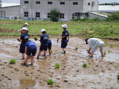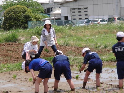 今年度も米作りの先生である加藤勇治さんにお世話になって田植えを行いました。すでに学校で加藤さんにお世話になって苗を育てていましたが、植える大きさになったので5月22日(水)に行いました。泥だらけになりながら何とか植えることができました。これから秋の収穫まで心を込めて育てていきたいと考えています。加藤さん、ありがとうございました。
