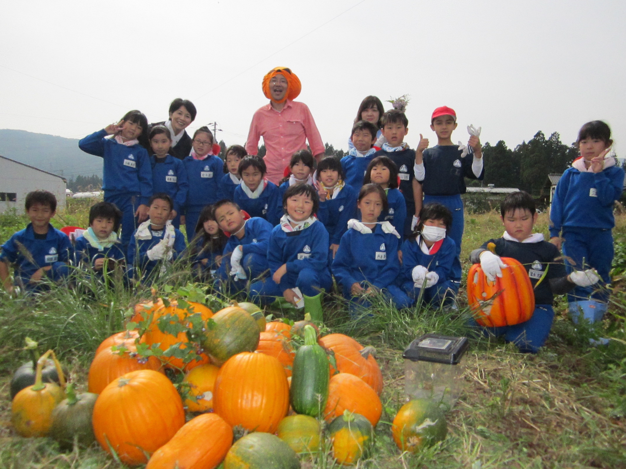 アンナガーデンのみなさんは、ハロウィンの準備のためにかぼちゃを栽培したそうです。その収穫をぜひ地元の荒井小学校の子供たちと一緒に、と誘っていただきました。2年生は、重いかぼちゃを抱えながら、一生懸命手伝いをしました。かぼちゃを収穫した後は、草原を思いっきり駆け回って秋の自然を楽しみました。